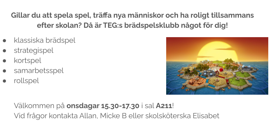 Välkommen till TEG:s brädspelsklubb!